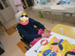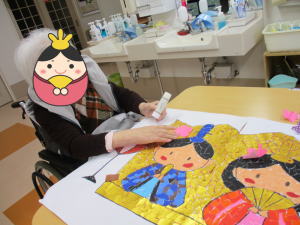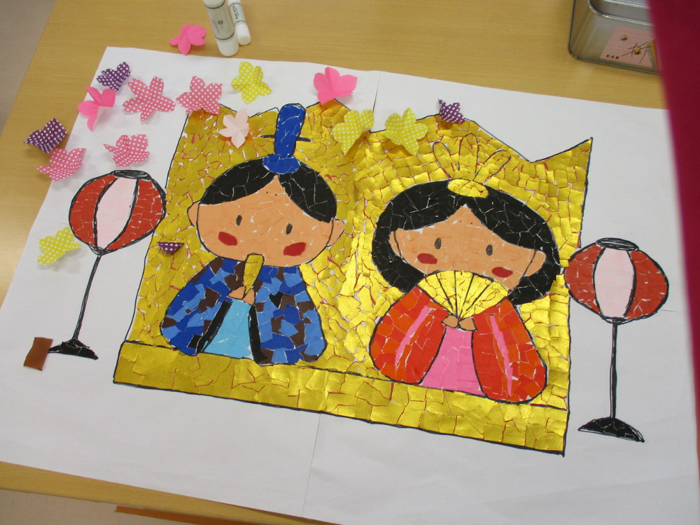 お雛様の貼り絵も時間をかけて一生懸命作りました。